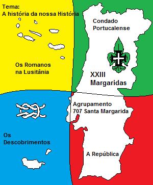 Em 1990, o Agrupamento dando conta que nos três dias de Carnaval, os jovens da zona, pouco ou nada se divertiam sonhou que talvez uma actividade Escuta pudesse contrabalançar os festejos carnavalescos que na altura pouco existiam , e assim tomando por mote nem só de pão vive o homem,lançou o lema de que nem tudo é Carnaval, e deu à actividade de quatro dias o nome de Margaridas, não por se realizar, em Santa Margarida, Campo Militar, mas sim por nessa época do ano os campos aparecerem cheios de Margaridas Brancas, que dão um aspecto maravilhoso à paisagem em que vivemos. Assim as Margaridas tiram o nome de Angios, malmequer do campo, designação de plantas da família das compostas, que podem ser ornamentais pelas suas flores vistosas, com pétalas brancas, amarelas ou alaranjadas - a Margarita.